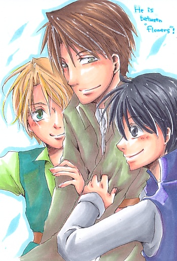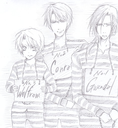 ちょっと厚く塗ってみた(当社比) だから顔がなんか濃いです(笑) 本当は三男もあっち(有利の向いてる方)見てたんだけどね。 同じ輪郭が2つもあるって気持ち悪い! のでコンラッド見つめさせました。 題名両手に花とか言っちゃってるけど このあとウェラー卿は 「うわーこれ前から欲しいと思ってたんだよコンラッド!」(願望) 「僕はそうだな…コンラート、コレが欲しい」(主張) たかられます。 なんて邪悪な子達なの!(爆)